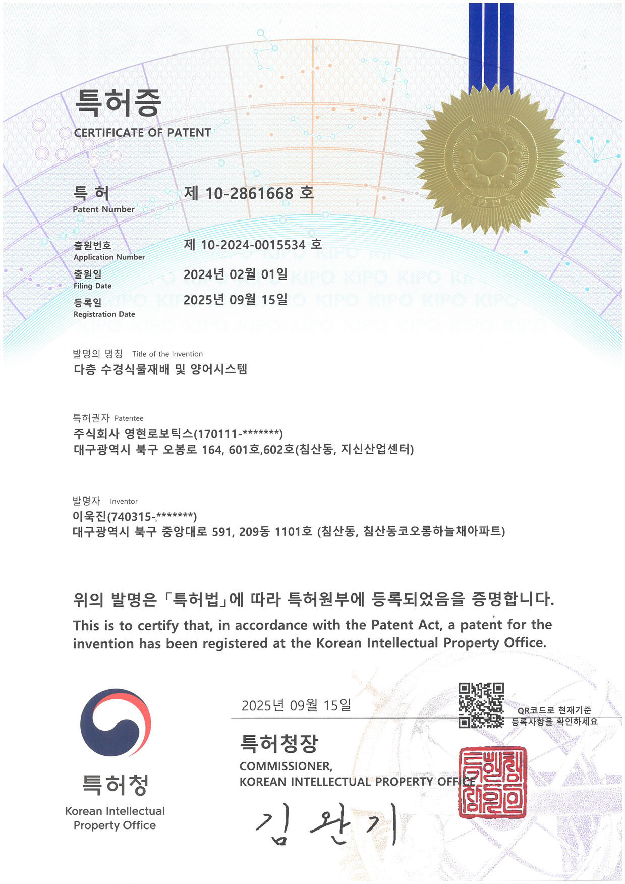 특허증_다층수경식물 재배 및 양어시스템