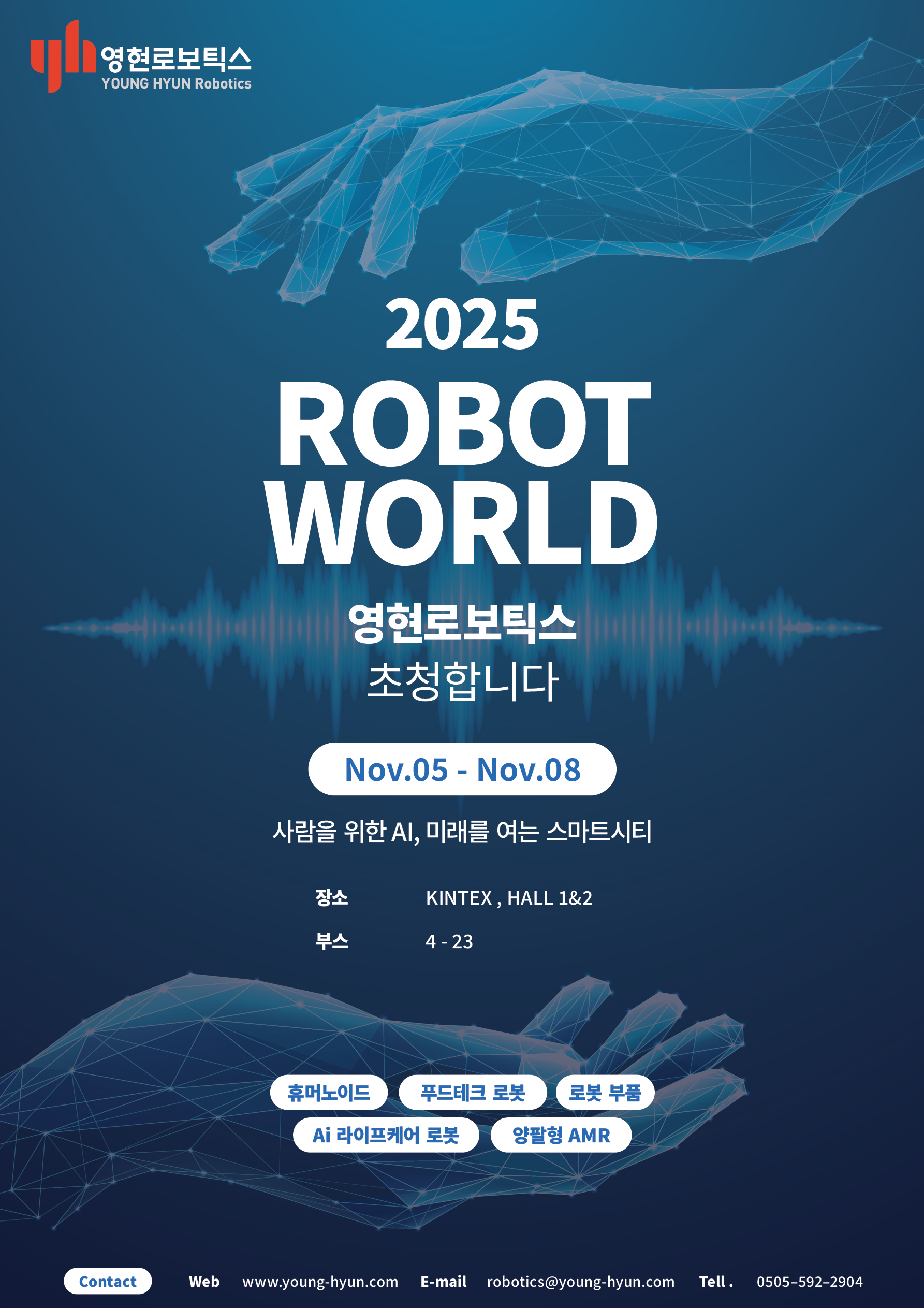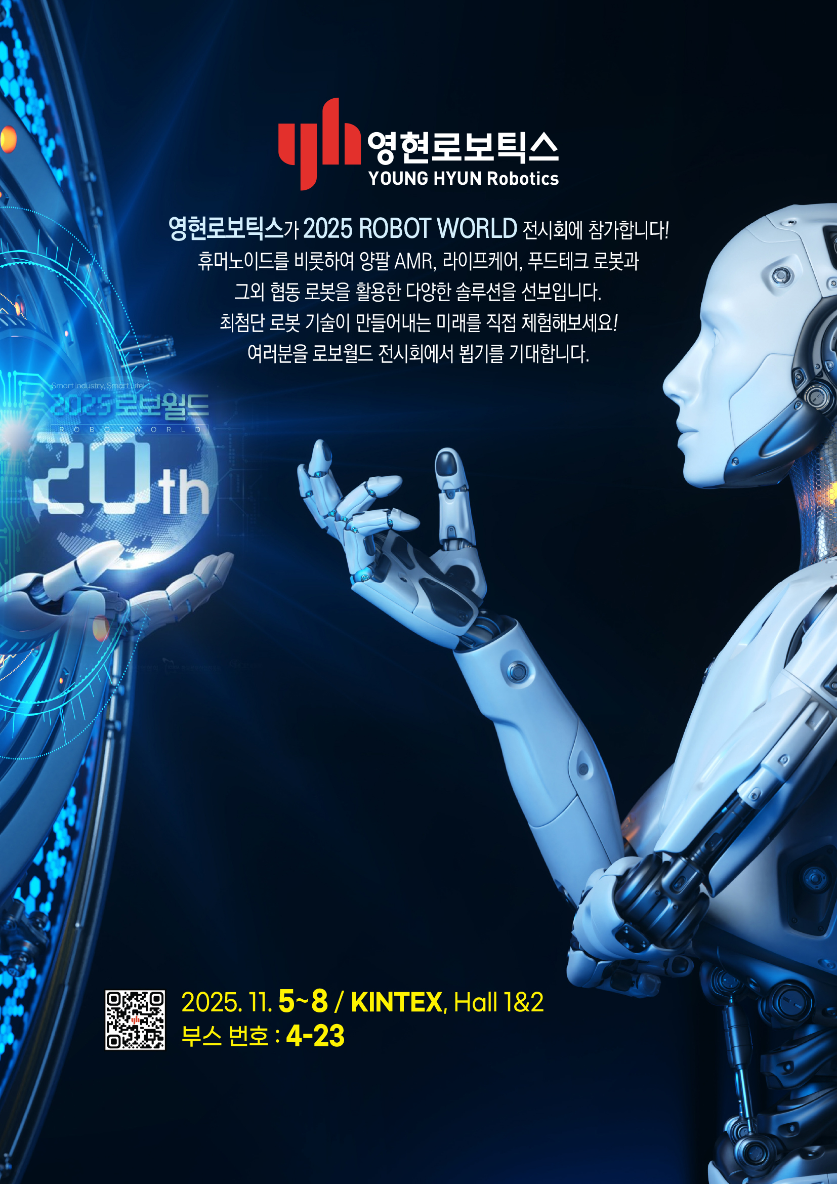 영현로보틱스는 일산 킨텍스에서 2025년 11월 5일부터 11월 8일 까지 열리는 [2025 ROBOT WORLD]에 참여합니다.